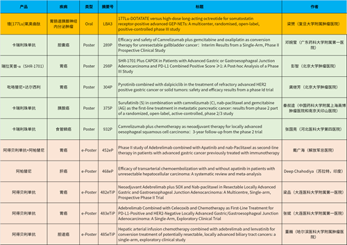 在消化系统肿瘤领域,尊龙凯时产品相关研究共入选1项最新突破性摘要(LBA)、5项壁报和5项电子壁报,共11项研究。其中阿得贝利单抗入选4项研究、卡瑞利珠单抗入选3项研究。